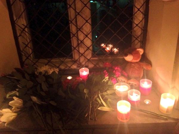 Muscovites leaving flowers and candles by the Dutch embassy in #Moscow. One note says Forgive us."