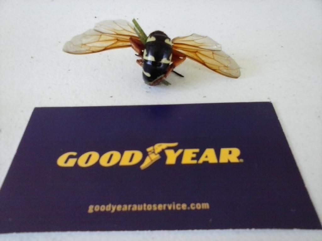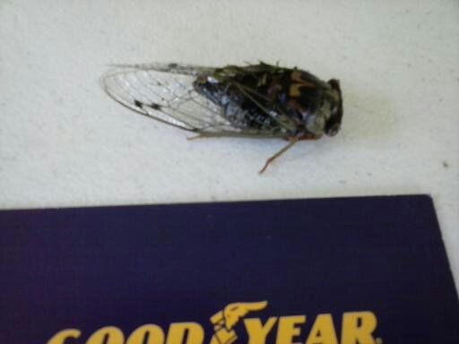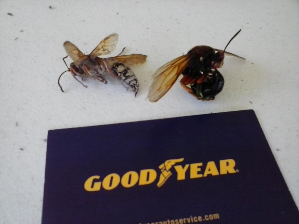 (162 posts)rear porch and the front one as well. Funny to see them carrying a cicada, large or small through the air looking for the entrance to their underground nest. Pic of them, then a pic of what they fly with, and this is a SMALL cicada, I have seen them with larger versions and I often think they resemble a hummingbird when they are carrying one. Wife is allergic to bee stings and one of these might land her in the ER.