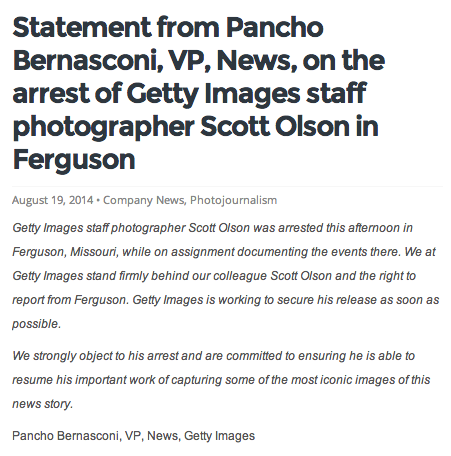 It looked at first like police in Ferguson, Missouri, were lashing out at journalists only incidentally. Everyone in their path seemed to be at risk of being teargassed, arrested without charge, or having assault rifles pointed at them without warning so naturally the reporters milling around town were at similar risk. Increasingly, though, it is becoming clear that police in Ferguson are targeting journalists, using intimidation, arbitrary arrests, and physical force.