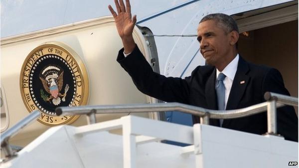 A wave for the world and Wales - as President Obama arrives in the UK for #NATOSummitWales