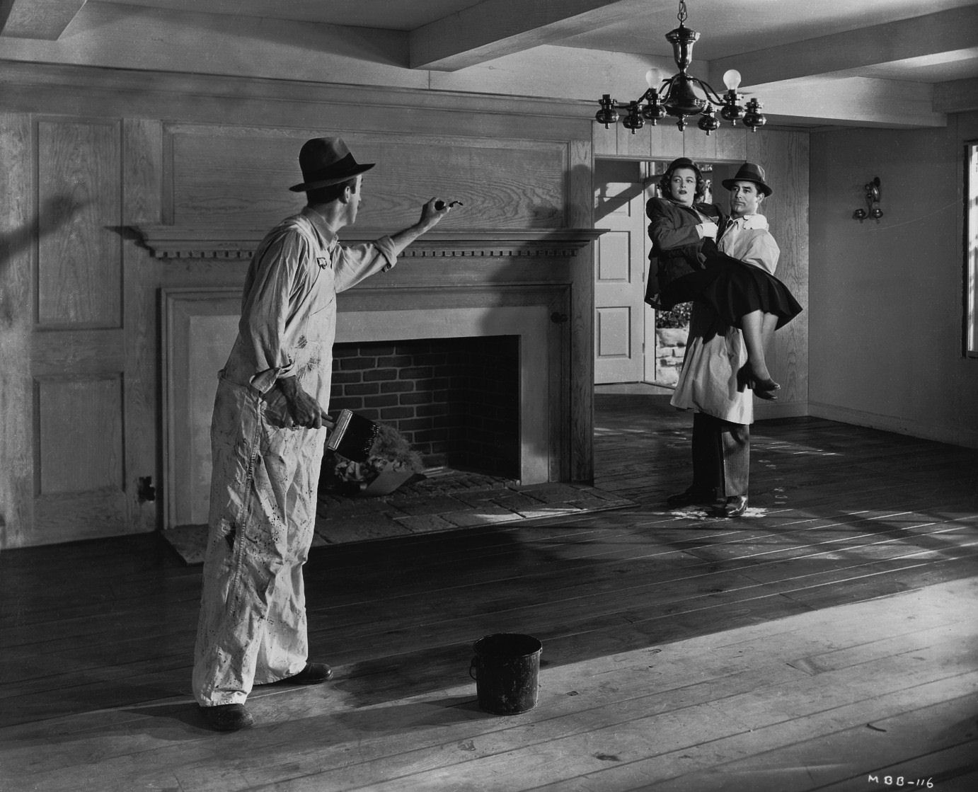Mr. Blandings (With his wife still in his arms): "Stop painting that floor and put some planks down in here or something!"