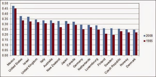 (35,987 posts)how much more do you think folks can take? The gini coefficient continues to show growing inequality when comparing countries. There we are down there with Mexico: