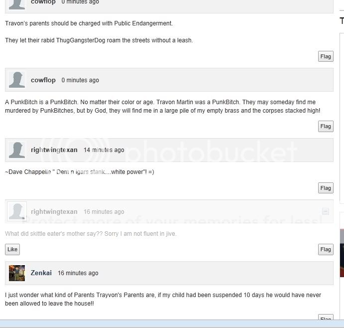 (13,427 posts)on the MSNBC website. Any ideas where to send it? What is shocking is that the comments on that screen shot aren't even the worst of the hundreds in response to that article. It's like having a hidden mike at a Klan meeting.