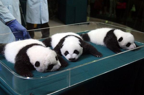 This is the day these panda triplets first opened their eyes