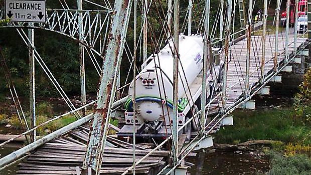 Not only did the collapse force traffic to be diverted, but a gas line running under the bridge which services 4,500 nearby residents had to be shut off, official said. Up to 50 vehicles per day travel over the 1878 bridge, which had its beams replaced in 1990.
