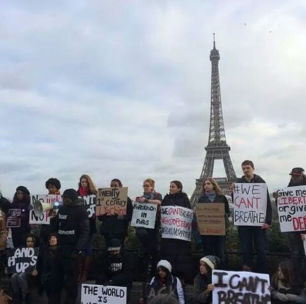 #ICantBreathe Protesters in Paris march in solidarity with #EricGarner and #MikeBrown #BlackLivesMatter #GrandJury