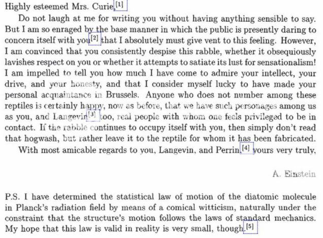http://io9.com/in-1911-albert-einstein-told-marie-curie-to-ignore-the-1668014759