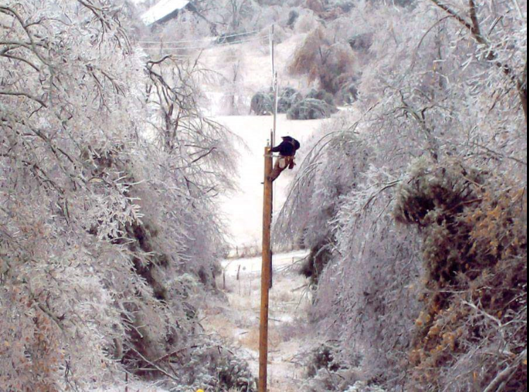 We had linemen like the one in this picture in from all over the country, but I live back in the woods and am serviced by a single line, so I was last on the list.