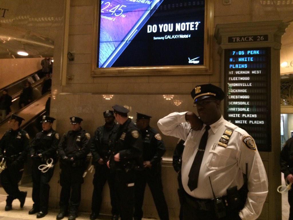 Huge police presence at #GrandCentral. #BlackLivesMatter protestors continue die-in and moment of silence.