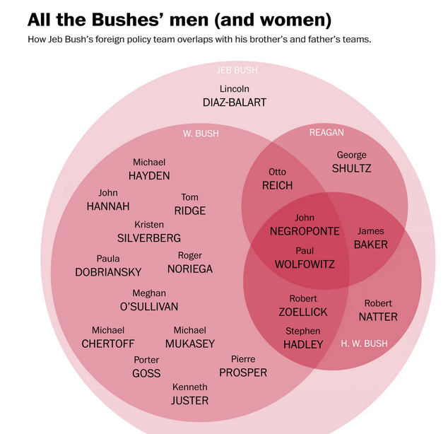 (89,294 posts)I'm actually kind of surprised that his name isn't on there. But I'll bet he's still lurking in the shadows. PNACers tend to stick together. paula dobriansky and robert zoellick are on jeb's list of "chosens" too, along with paul wolfowitz. That's at least three of 'em. But I'd bet there'll be more slithering their way in, too. These people will all want to bring their friends to the party with them.