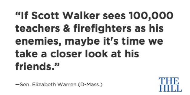 "If Scott Walker sees 100,000 teachers & firefighters as his enemies, maybe it's time we take a closer look at his friends."