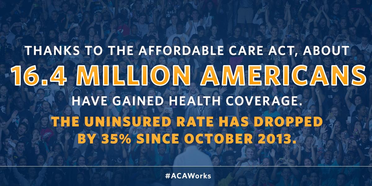 FACT: The uninsured rate has dropped by 35% since October 2013 → http://bit.ly/1Eqt2MO #ACAWorks