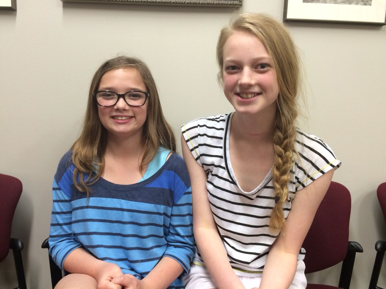 Bryn Hansen, 11, and Emily Harkins, 12, are finalists in Buffetts Secret Millionaires Club Grow Your Own Business Challenge. More than 4,000 children entered the contest, 13 were named finalists. The girls invention the Keep Track Sticky Back is one of three in the Team Finalists division.