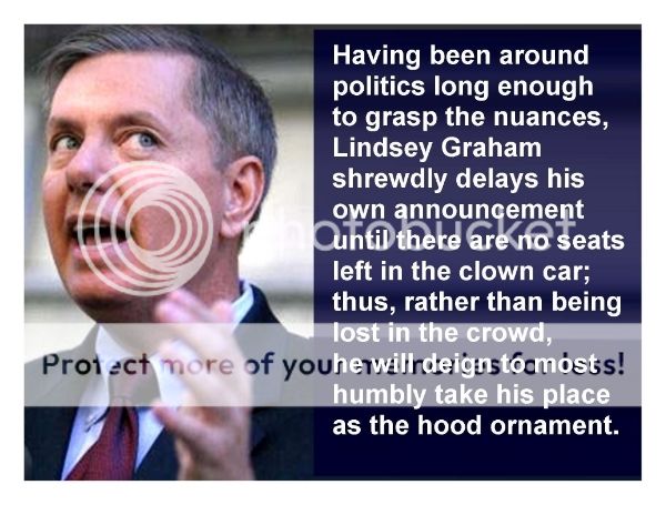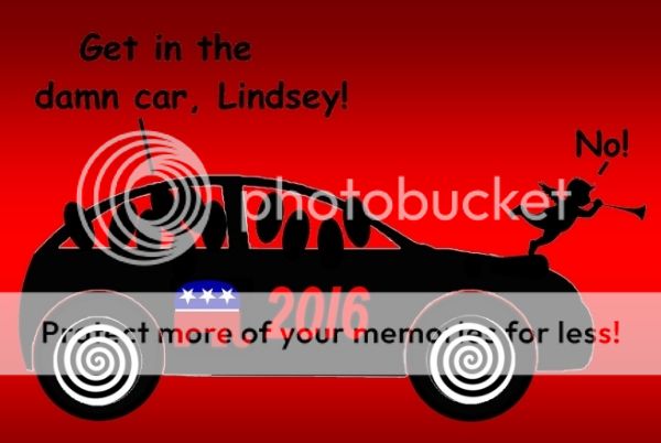 (10,998 posts)2. Please! Would someone photoshop that image: Lindsey as the clown car hood ornament