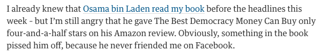 Finding out that The Best Democracy Money Can Buy was on the Bin Laden bookshelf confirms my fears about Americas war on whistleblowers