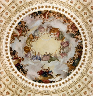When the fresco was completed, four million black people called the United States home but were only that year able to enjoy even the most limited experience of citizenship when the Civil War ended and the Emancipation Proclamation began the process of ending slavery. Of course, Brumidis fresco only features white faces.