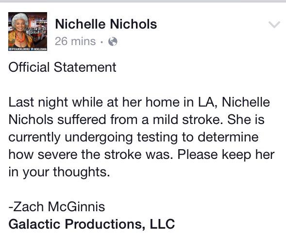 Star Trek's Nichelle Nichols Suffers Mild Stroke (Original Post) bigtree Jun 2015 OP
