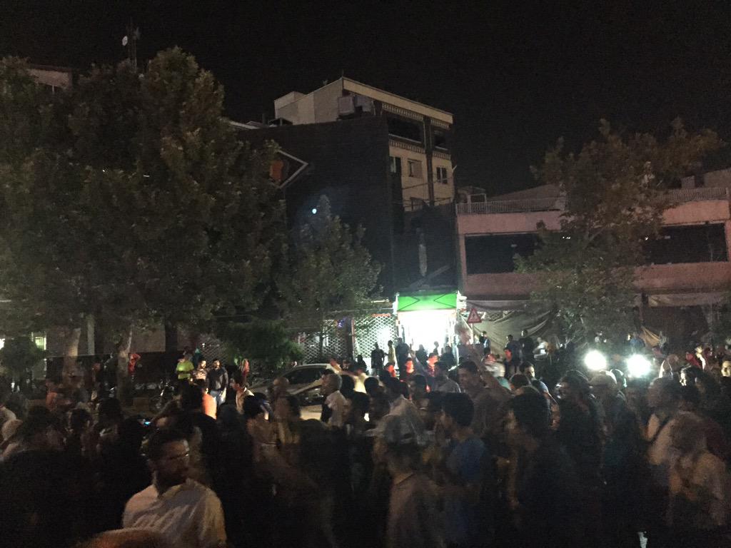 Hundreds of people have gathered at Vanak square. One man says: "have you ever seen that? The police is helping us."