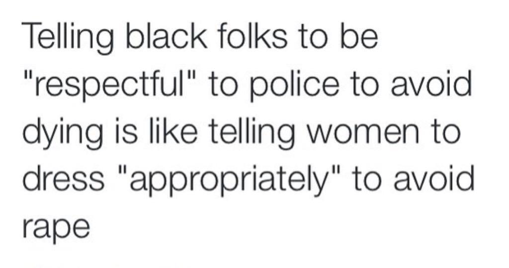 As my original post pointed out, you could also make an argument that recommending to women that they dress modestly was intended as helpful friendly advice born out of concern that they not fall victim to some sexual predator... but that's exactly the point. The onus isn't supposed to be on them to dress modestly and it's not supposed to be on people to tread lightly around the police in case on of them decides to go off on a power trip if you rub them the wrong way.