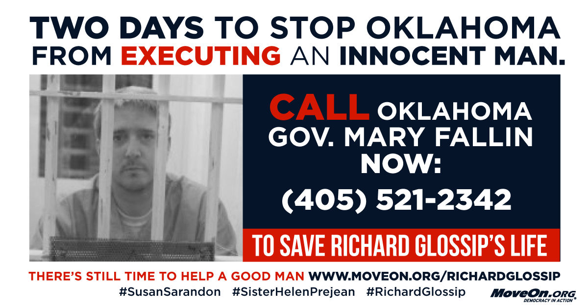 Oklahomans @TomCoburn @Barry_Switzer & innocence advocates urge @GovMaryFallin to stay execution of #RichardGlossip http://huff.to/1ijDvUx