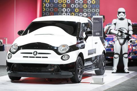 A Fiat Chrysler Automobiles NV (FCA) 500e Stormtrooper concept vehicle inspired by the Star Wars franchise is displayed at the Los Angeles Auto Show in California on Thursday. This years auto show opened yesterday and runs until Sunday next week.
