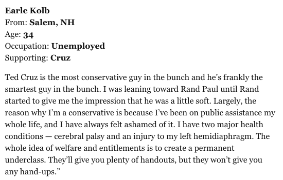 Related: Editorials & Other Articles, Issue Forums, Alliance Forums, Region ForumsOuch "The reason why I’m a conservative is because I’ve been on public assistance my whole life"