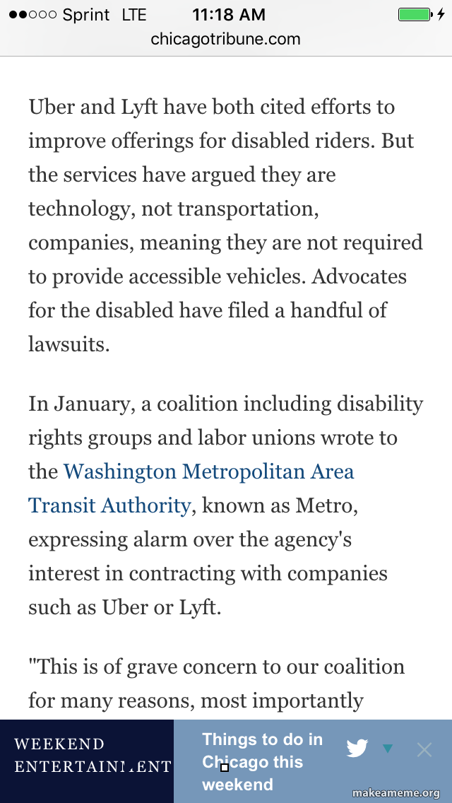 THE DISABLED HAVE FILED SEVERAL DISCRIMINATION LAW SUITS. Uber's response is consistent with its business model "claim": ridiculous on its face.
