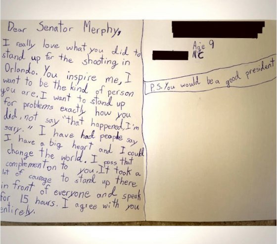 This is a sweet letter, but the Clinton staff tweeting it makes me think they are paving the way for Murphy.