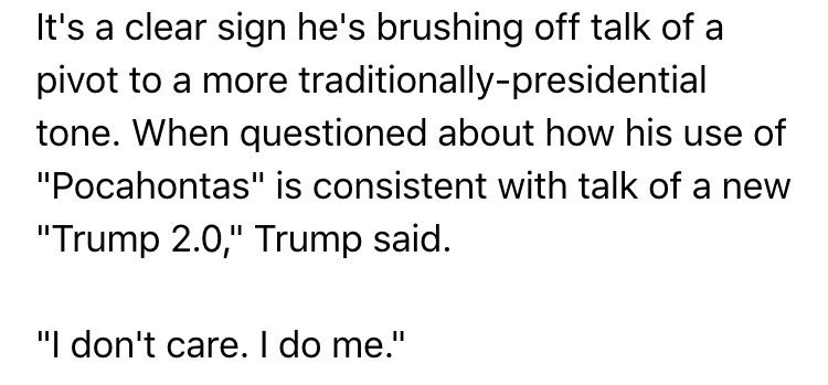 Trump statement hitting warren does so without "Pocahontas"