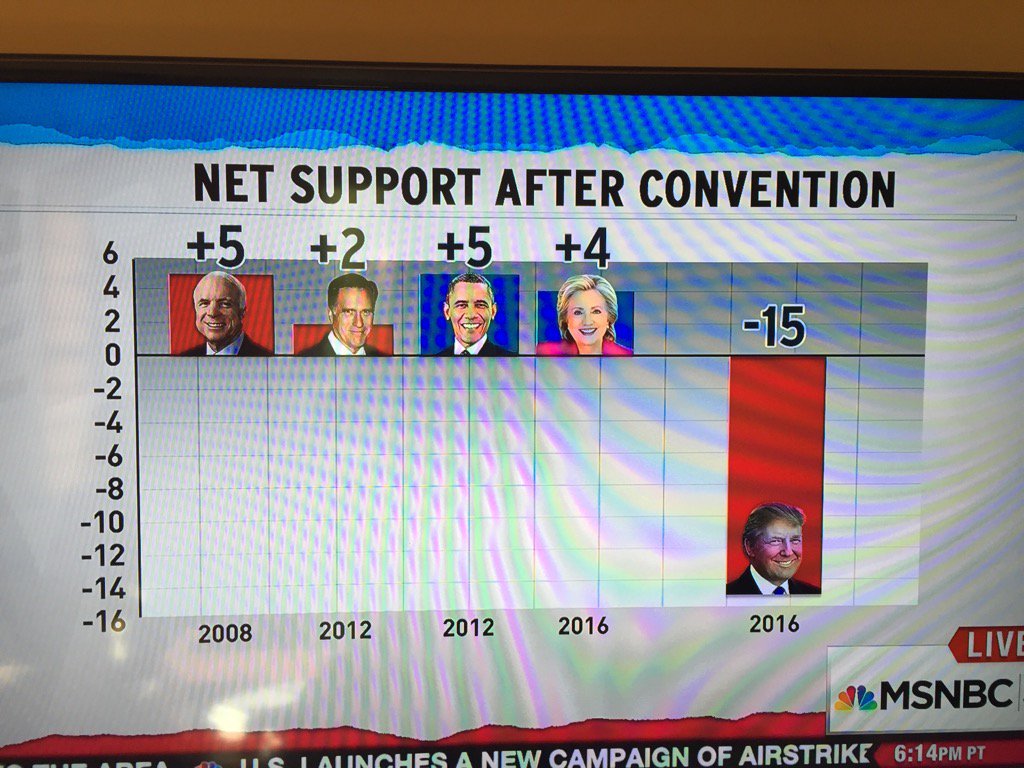 (44,397 posts)Republican nominee Donald Trump is the first candidate to actually lose overall support based off of the convention in which he was nominated, according to new numbers from Gallup.