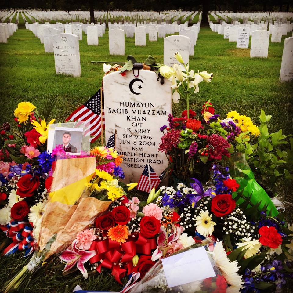 As Trump keeps defending attacks on the Khan family, this was their son's grave yesterday.
