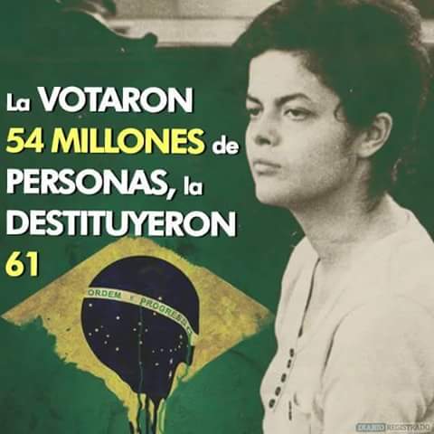 (60 rightist Senators swept the will of nearly 60 million Brazilians. No crime proven, it's a coup.)
