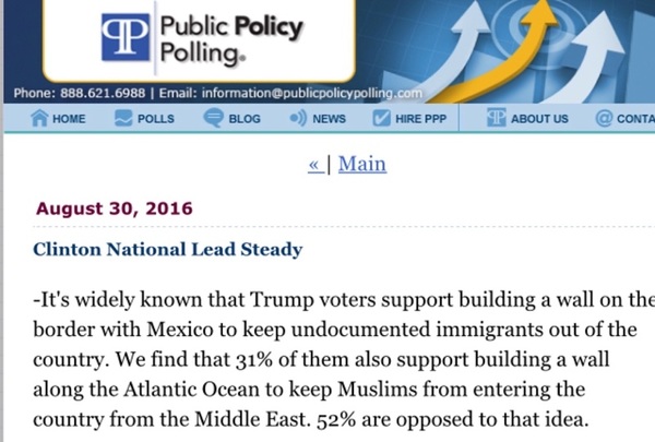 I LOVE that 31%, almost a third, would support a wall along the Atlantic coast. Until someone explains a few things to them, anyway.