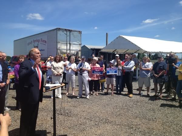 Rendell himself and a second contingent of several dozen people were visible in a gravel lot some distance from the Wawa. Rendell addressed that group from a lectern for several minutes. They then walked down the road to join the group near the Wawa.