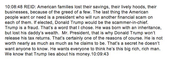 "If elected, Donald Trump would be the scammer-in-chief." —Harry Reid on the Senate floor this AM. (Original Post) kpete Sep 2016 OP
