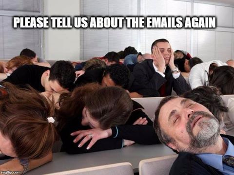 Oh right. EVEEL EMAILZZZZZZZ!!! HILLARY CAN'T BE TRUSTED!!! BENGHAZI!!!! SECRET SERVER!!!!