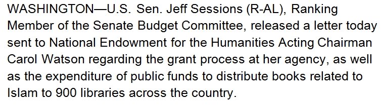 (80,031 posts)2. Three of Trump's picks - Bannon, Flynn, Pompeo - have disparaged Muslims. Fourth, Sessions, criticiz