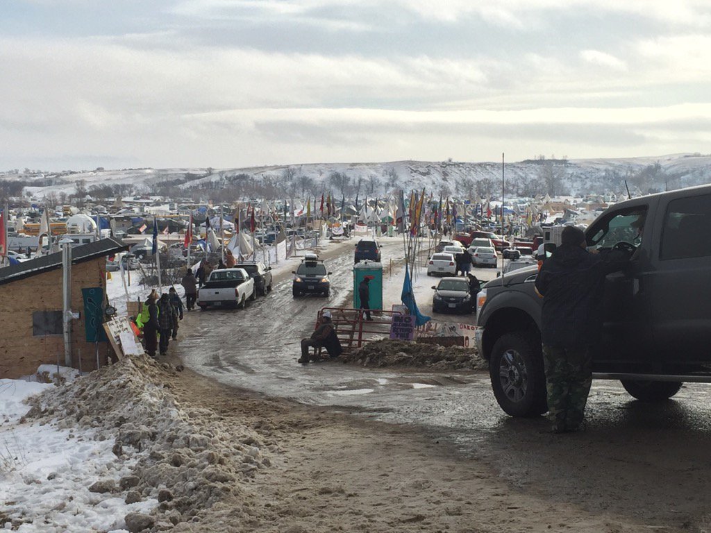 A steady stream of vehicles, many veterans, coming into #standingrock camp today for #NoDAPL protests
