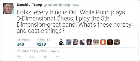 Heck, Trump does not play 3-D chess like Putin. TheBlackAdder Dec 2016 #2