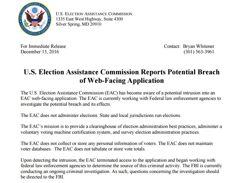 The Hill @thehill 13m13 minutes agoElection Assistance Commission warns it may have been hacked: http://hill.cm/qyTcMEE