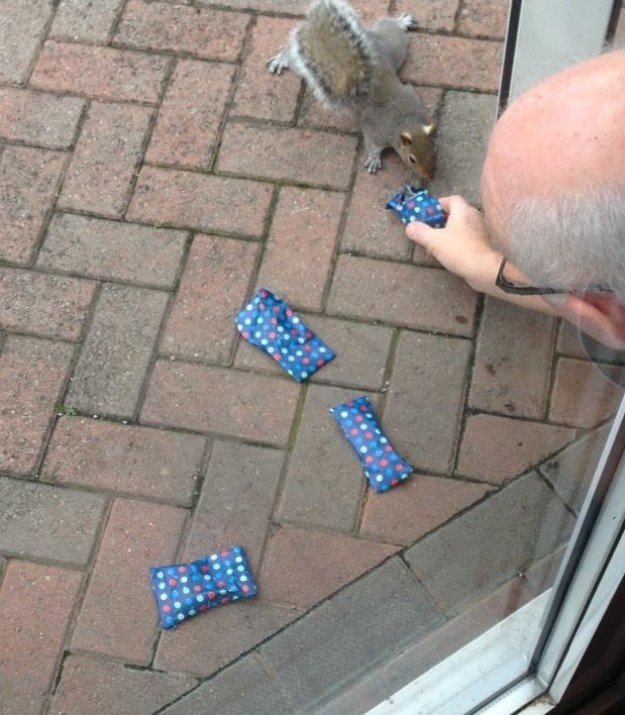 He packaged up some nuts in wrapping paper so their furry friends would have something to open on Christmas morning.