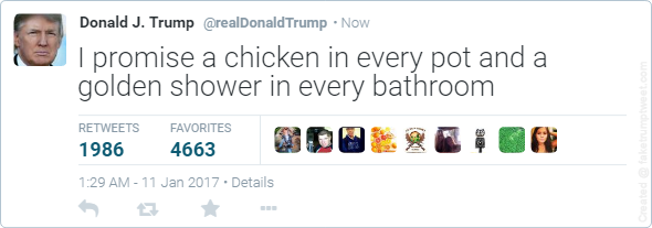 (8,694 posts)There's a fake tweet website you can make them. Which is actually terrifying, considering Trump
