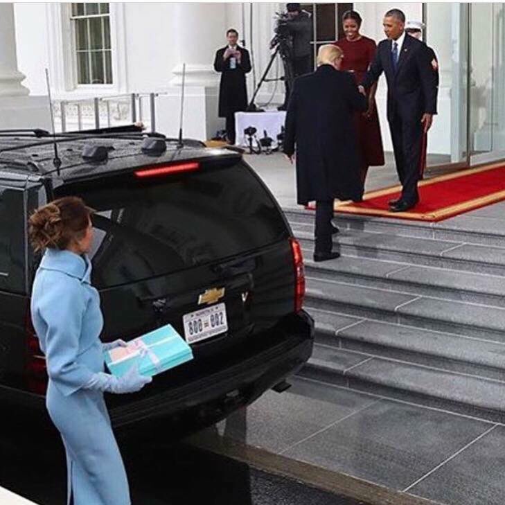 I watched the greeting and giving of that box bit, Trump just barged between Melania and Michelle, forcing Obama to walk around Melania to take the box and hand it off. So awkward.