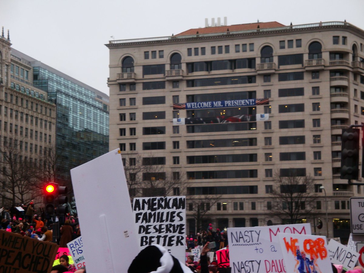 My son grew tired of hearing me remark, over and over, on how remarkable the numbers of people were, but, that was one amazing sight to behold. As we approached D.C.'s own 'Trump Tower' the songs (like 'We Shall Overcome,' and This Land is Your Land') gave way to deafening roars of 'shame, shame!' which echoed far into the distance. I'm getting chills just recalling the sound and fury.