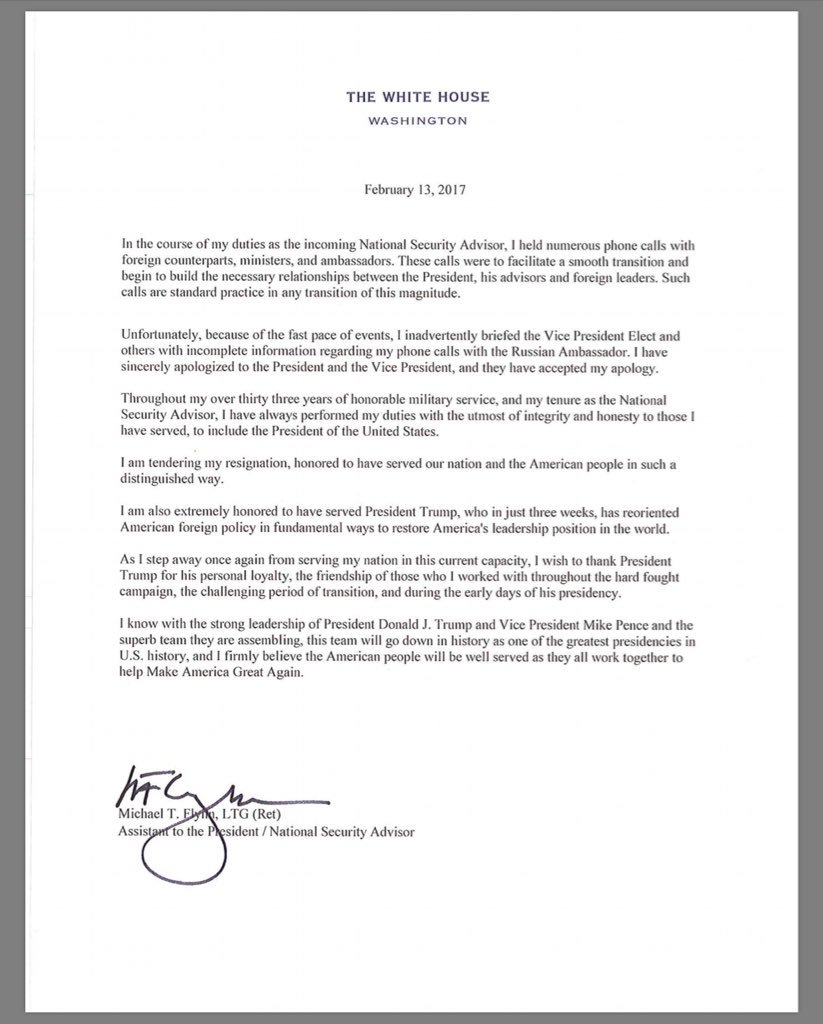 BREAKING: National security adviser Michael Flynn has resigned.