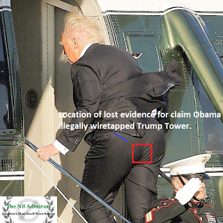 WASHINGTON (The Nil Admirari) - Earlier today, President Donald Trump declared he had lost the evidence of President Obama illegally wiretapping Trump Tower during the 2016 presidential election. Trump asserted he had lost the evidence that proved his accusation deep inside his derriere.