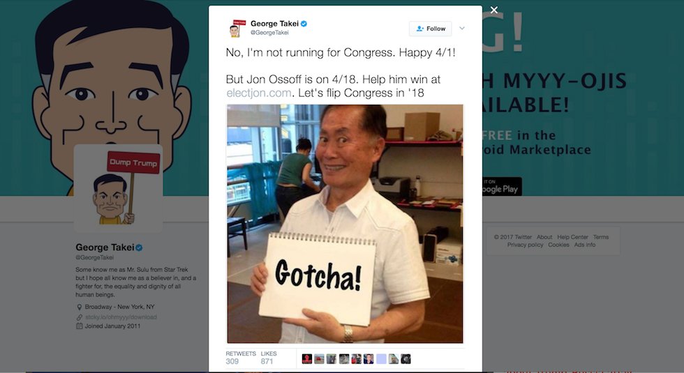 (2,389 posts)George Takei has already confirmed that this is a an April Fools joke.