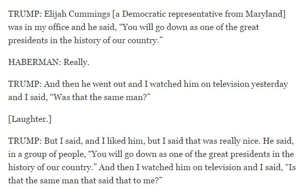 Related: Editorials & Other Articles, Issue Forums, Alliance Forums, Region ForumsTrump says Elijah Cummings said: "you will go down as a great president" - Cumming's Reply: NOT TRUE