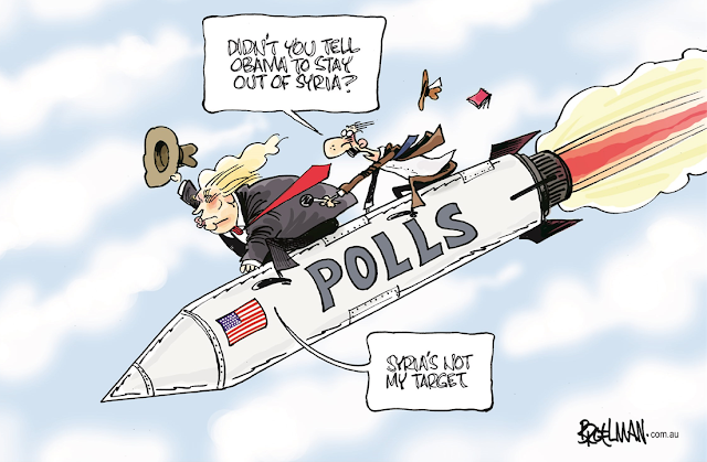 I don't think this whiplash inducing policy change was Dolt's idea. I don't think it was his idea to shitcan Bannon at the NSC. I don't think it was his idea to tweak Putin's nose by launching million dollar missiles at an air base with MIGs and Russian pilots around. And I notice how uncharacteristically subdued his statement after the fact was, with no bravado, no boasting, and absolutely no bully's swagger. I'd have expected a "We showed THEM!!" but it wasn't there.