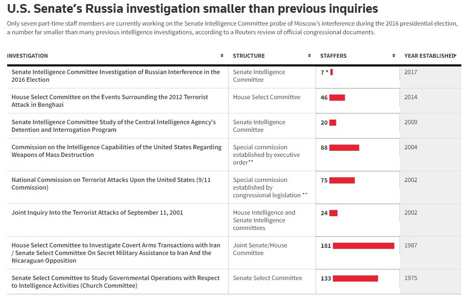 There were 46 staffers on just one of the 7 committees that investigated Benghazi. There are 7 Senate staffers investigating Trump & Russia.
